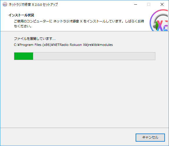 プログラムは次のようなファイル名です。NETRadio Rokuon X-x.x.x.exe